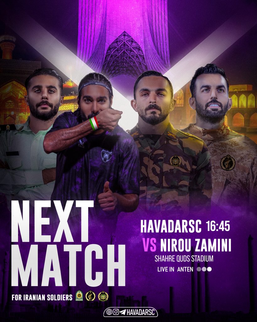 به بهانه شهرآورد هوادار و نیروی زمینی و جدال با نماینده ارتش جمهوری اسلامی ایران در عرصه ورزش و فوتبال و به یاد و پاس رشادت های سربازان شجاع نهادهای نظامی سرزمین مقدس و باستانی مان که وظیفه خطیر دفاع از تمامیت ارضی و آب و خاک و آسمان وطن را بر عهده دارند،پوستر و طرح گرافیکی پیش بازی نهمین دیدار بنفش ها در رقابت های لیگ یک چنین حال و هوایی به خود گرفته است